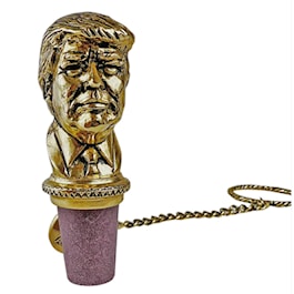 Show your support for the former president with this one of a kind bottle stopper. This bottle stopper is cast in solid fine pewter and plated in 24k Gold. . The synthetic cork will not stain or crack. It comes equipped with a chain attached to a ring which goes around the bottle's neck.