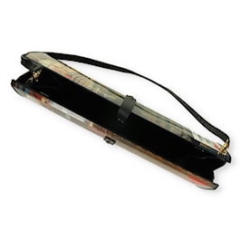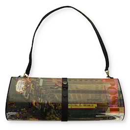 This clutch purse with a handle showcases the image of Fifth Avenue in New York as featured on the cover of the Saturday Evening Post March, 1980. On the back side is a fountain. An insert reads: What makes me laugh? By Jean Kerr and The Democrat Candidates by Stewart Alsop. This is a conversation piece for sure.