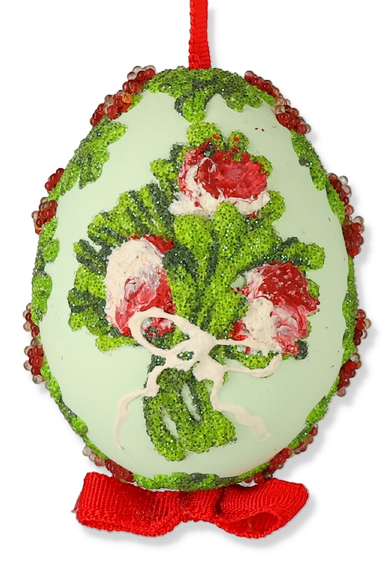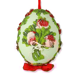 Red Green Floral Hand-Painted Egg