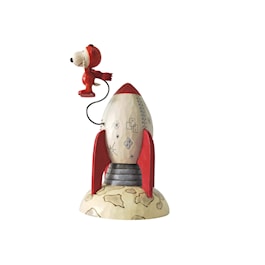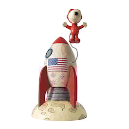 Celebrate our American Space Heritage with this collectible figurine. May 5th is Astronaut Day! Great gift for the space lover in your life! This spaceship patterned in stars and the American flag, this Jim Shore design is out of this world. Landed atop the moon, Snoopy takes one giant leap for puppy-kind. Floating off into space, Snoopy wears a wide smile on his face and his classic red scarf around his neck.