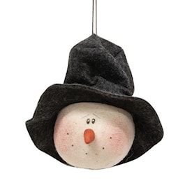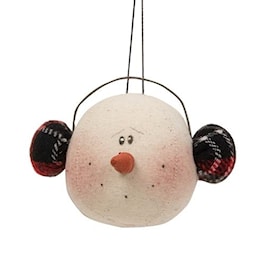 Snowman Head Ornaments is a set of three stuffed snowman head ornaments with various winter accesories. Ornaments wear a gray, floppy felt hat, a plaid stocking hat, or plaid earmuffs and they look great displayed together or placed in various spots around the home. Ornaments have a string hanger for easy display on Christmas trees, hooks, nails, and they also double as fun stocking stuffers.