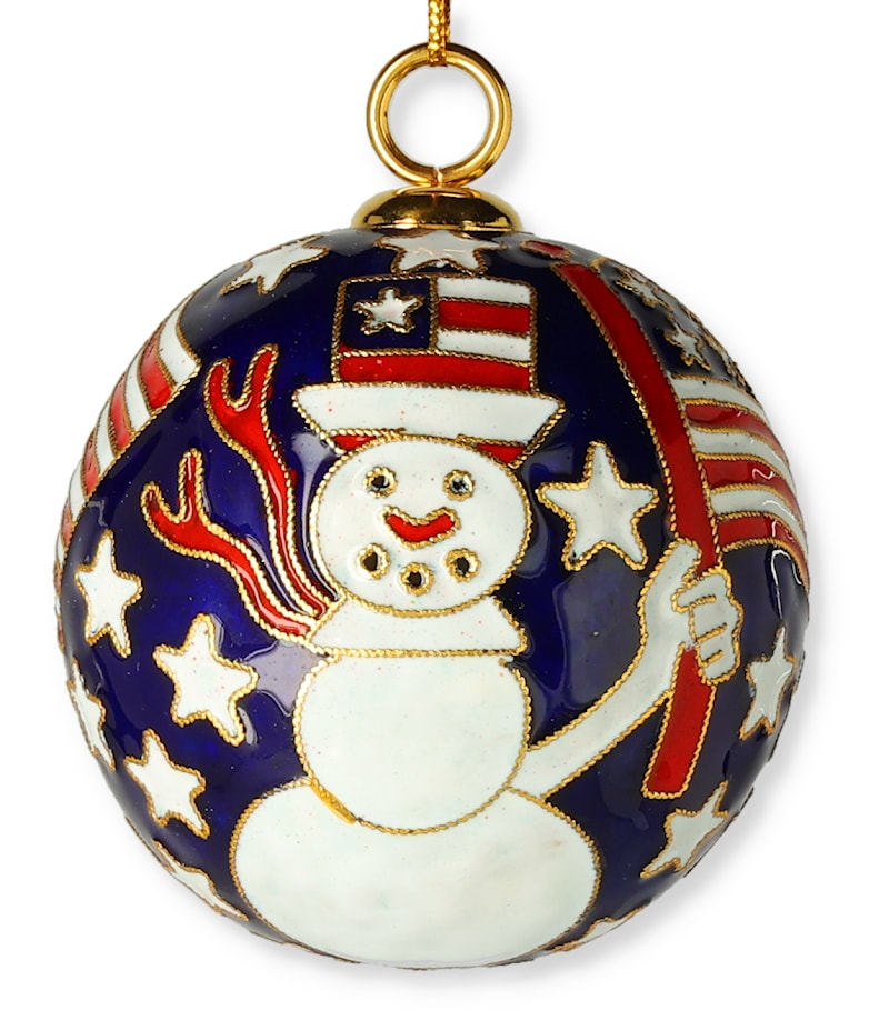 Snowman Patriotic Flag Ornament