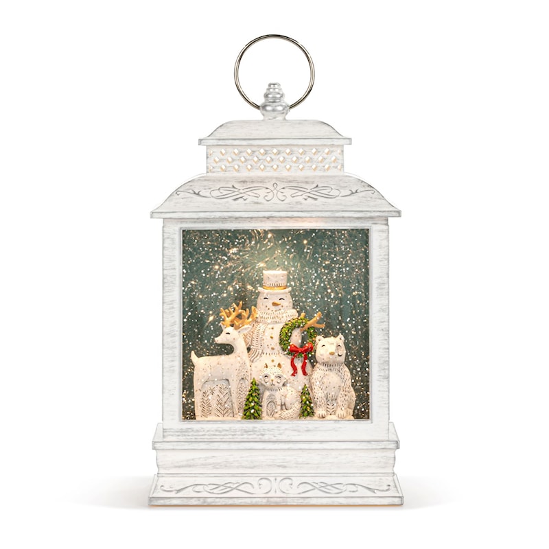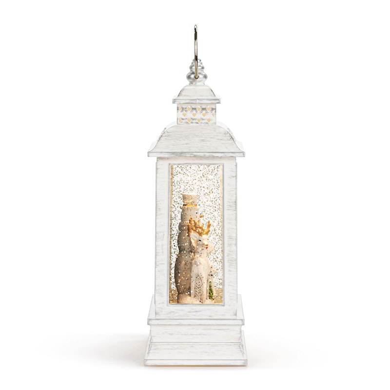 Snowman Winter Scene Lit Musical White USB Snow Globe Lantern