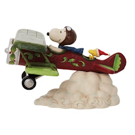Woodstock and the Flying Ace, Snoopy's pilot persona, spread Christmas joy by air this holiday season. Flying above the Peanuts skies in their red and green plane outfitted in holly and wreathes, the pair deliver fun in this Jim Shore design.