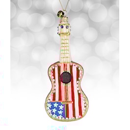 - Sterling Silver Lined Hand Blown Glass Patriotic Guitar Christmas Tree Ornament Decoration
