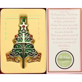 The Christmas Cross Tree celebrates the promise of Jesus. His birth is symbolized by the Christmas Tree and yet upon another tree, the cross, came His death with the promise of eternal life. The five stones are for the wounds He bore. Hang this ornament to serve as a reminder of all Christ did for us.