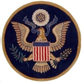 Made of 100% New Zealand Wool yarn, this stately Great Seal rug is handmade and hand-tufted. It is elegant enough for a corporate office, lobby, or any room in your home with dignified decor. Imported. Buy directly from the manufacturer-White House Holidays.