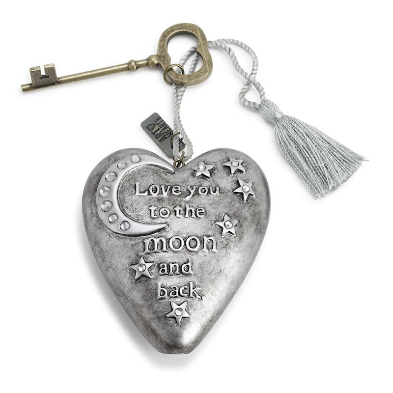 Each piece is based on an artisan-made sculpture or painting and comes bearing a message that inspires, connects and brightens the day. This collection - including the To The Moon Art Heart - reinforces the bonds of family and friendship and offers daily reminders of life's important blessings.
