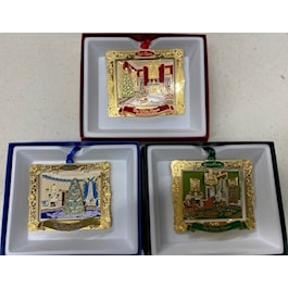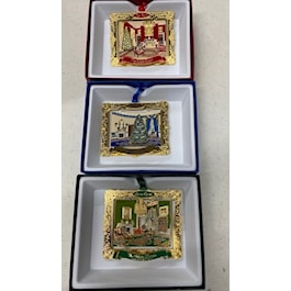 Collect them all - Trio of White House State Rooms including the 2018 Red Room, 2020 Blue Room and 2019 Green Room. Great Savings when you buy the set. Each ornament has its own Info card, gift boxed separately.