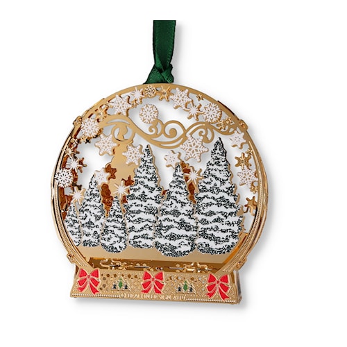 This ornament was beautifully handcrafted in the USA from solid brass, 24kt Gold finish, with digitally printed color. Packaged in an elegant window showcase.