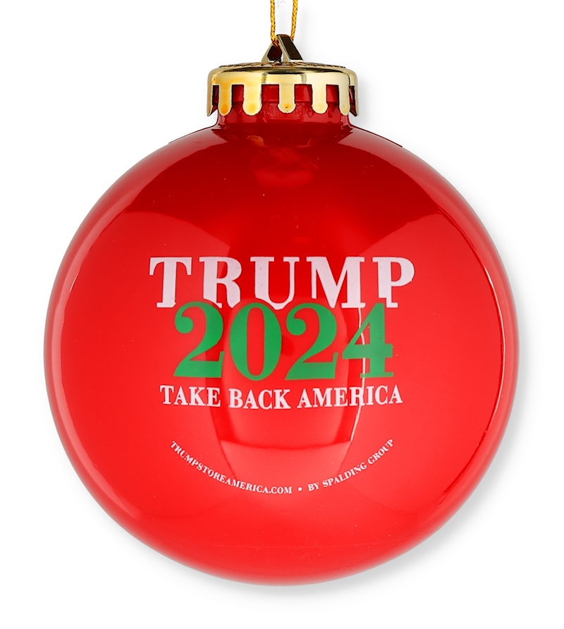 On to 2024! Show everyone you're celebrating Trump this year. Hang your Trump 2024 ornament with pride this year.