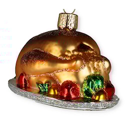 In many homes, it wouldn't be Christmas without a traditional stuffed turkey for dinner. This beautiful turkey is dressed with served on a shiny silver platter. Commemorate the gathering of friends and family with this charming ornament.