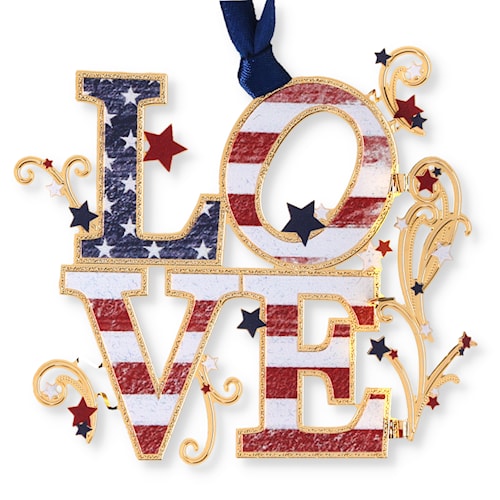 This beautifully handcrafted ornament is made in the USA from solid brass, finished in 24 karat gold, screen printed with exquisite color, and is packaged in a window box.