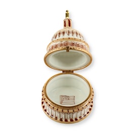 Experience the epitome of luxury and elegance with the United States Capital Building Limoges Porcelain Trinket Box. Handcrafted in France by master artisans, this exquisite trinket box showcases the finest French artistry and meticulous attention to detail. Its timeless beauty and unmatched quality make it a coveted piece for wealthy collectors of porcelain figurines.
