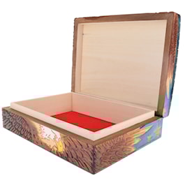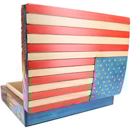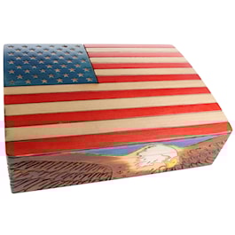 The top of this hand-crafted box is decorated to look like the American flag, while the front and sides of the box feature a majestic eagle spreading its wings.