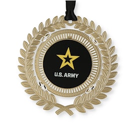 New to our collection is this U.S. Army logo ornament. It is a classic design of the Army logo, and this gorgeous ornament is finished in 24kt gold. It's 2 3/4 inch in diameter and 100% hand-crafted in America. This ornament is for celebrating our military and those who serve.
