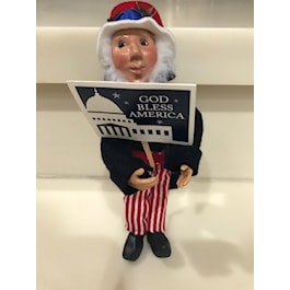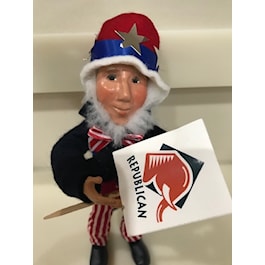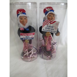 One Uncle Sam Kindle by Byers' Choice. Cute and bendable, 5 inches. Assorted signage - God Bless America, Republican, Democrat 2004, . Packed in Plastic Cylinder