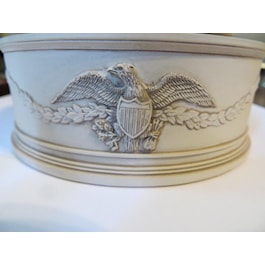 Three American bald eagles, each with a seal breastplate, adorn the sides of the lower portion of the box connected by a garland of leaves.