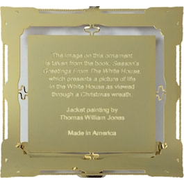 It's our Anniversary and we are celebrating the milestone with this 2016 White House Holidays Ornament. It commemorates the twentieth anniversary of the book, Season's Greetings from the White House. The centerpiece of the ornament is original art by Thomas William Jones, who was commissioned for the cover of the book. T.W. Jones is an American artist who was chosen by President and Mrs. Reagan to paint four State Rooms in the White House to be reproduced on their official Christmas cards.