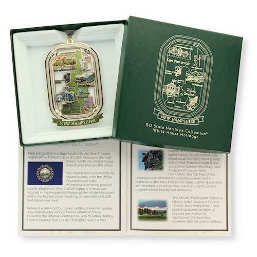 Each of our 50 states have a unique history that we have set out to celebrate with this collection. Each ornament features memorable historical events and fun features that tell a little bit about the state. These ornaments will be released periodically in the order in which the state became part of the United States of America. We hope you'll enjoy these as much as we have enjoyed designing them!
